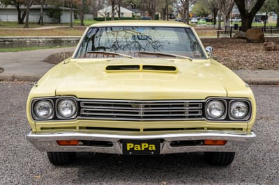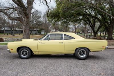 SBX Cars is proud to offer for sale this 1969 Plymouth Road Runner hardtop showing 81,362 miles on the odometer at the time of this cataloging. Finished in Sunflower Yellow over a saddle vinyl interior, this Mopar muscle car is now offered with spare keys, a broadcast sheet, engine assembly instructions, an owner’s manual, a warranty booklet, and a clear title.