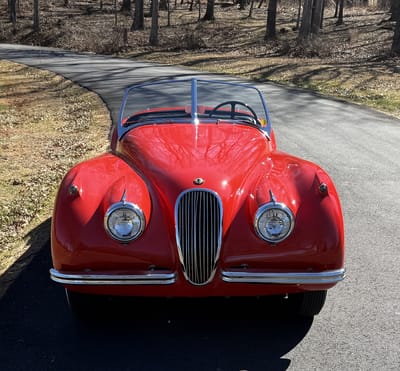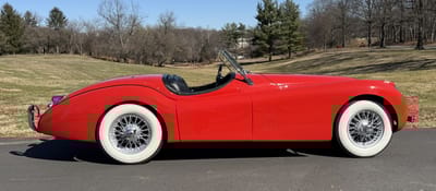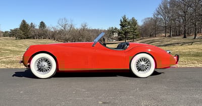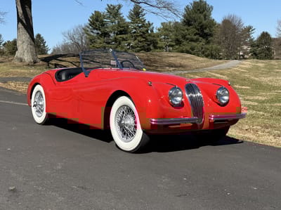 Per the seller, this 1954 XK120 Roadster has been regularly garaged, well-maintained, and fully detailed. It is also said to be a multiple JCNA award winner.