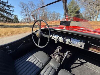 This 1954 Jaguar XK120 SE Roadster, showing 28,247 miles (45,459 km) on the odometer at the time of cataloging, is finished in Carmen Red over a black leather interior, and benefits from a comprehensive top-to-bottom restoration. The result is a stunning example of this rare breed that showcases the incredible amount of time and care invested in bringing the car back to a show-level standard.