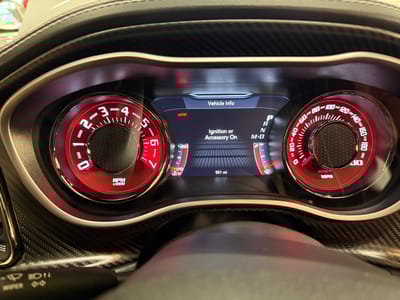 Under the hood sits Dodge’s wicked supercharged 6.2-liter HEMI V8. Making 717 horsepower and 656 lb-ft of torque, this outrageous ode to internal combustion can sling the Hellcat to 60 in less than 4 seconds and on to a top speed north of 200 mph. It’s the kind of setup that offers smoke shows on demand, backed by a limited-slip diff, adaptive dampers, and massive Brembo brakes to keep everything tight.