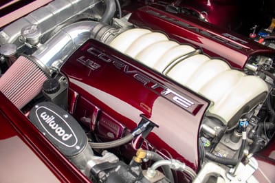 Further enhancements to the chassis include a GM Performance Hot Cam kit, a QA1 adjustable coilover suspension, a Wilwood disc braking system, and a Pioneer infotainment system with a back-up camera.